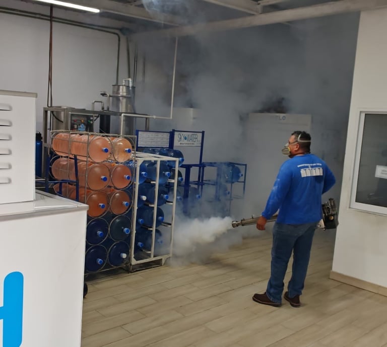 "En SKYWATER la calidad y la pureza de su agua son nuestra prioridad. Queremos que tenga la máxima confianza en nuestro producto, por eso realizamos periódicamente la fumigación y control de plagas en todas nuestras instalaciones. ¡Así garantizamos un entorno 100% higiénico y seguro para usted y su familia!"