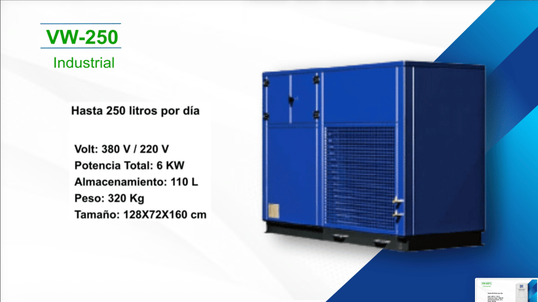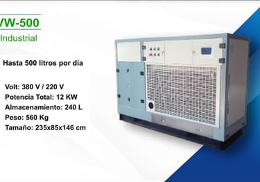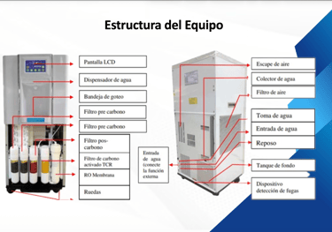Son equipos que absorben la humedad del medio ambiente, lo limpian y condensan, para posteriormente purificarlo y volverlo apto para consumo.